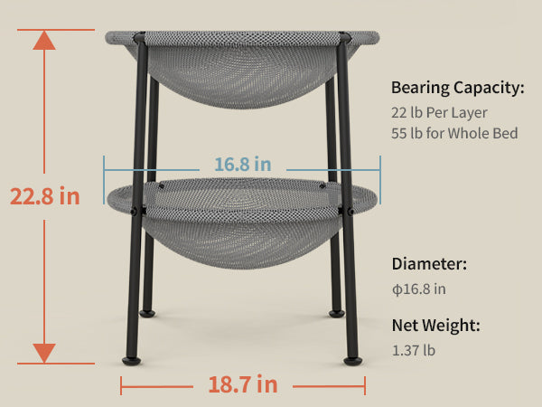[Double Deck Design for Multiple Cats] JUNSPOW Double Deck cat bed provides a double-decker space that allows multiple cats to rest much space saved. Large size with both upper layer & lower layer: φ42.6cm,10kg (22lb) bearing capacity per layer. Suitable for multi-cat households.