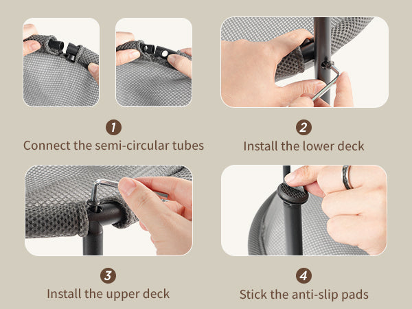 [Easy Assembly & Adjustment] The double-deck cat hammock has a vertical upper-and-lower structure for easy disassembly, making the fabric cover easier to remove and clean. The cat bed comes with a screwdriver and instructions, so no extra tools are needed for quick assembly within 10 minutes.